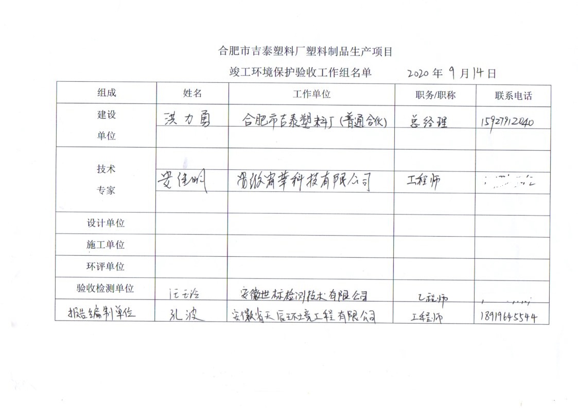 合肥市吉泰塑料廠塑料制品生產項目竣工環境保護驗收意見.pdf