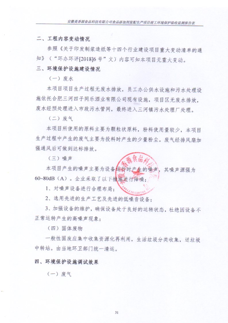 安徽美香源食品科技有限公司食品添加劑復配生產項目竣工環境保護驗收報告公示
